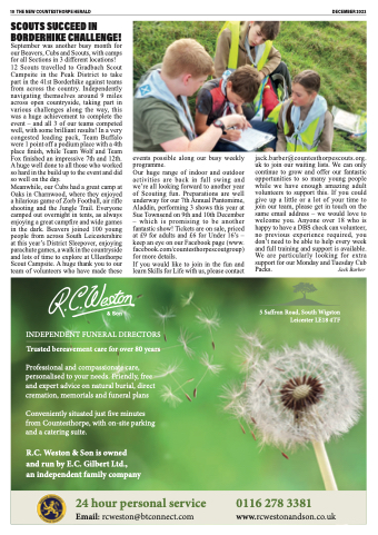 Our huge range of indoor and outdoor activities are back in full swing and we’re all looking forward to another year of Scouting fun. Preparations are well underway for our 7th Annual Pantomime, Aladdin, performing 3 shows this year at Sue Townsend on 9th and 10th December – which is promising to be another fantastic show! Tickets are on sale, priced at £9 for adults and £6 for Under 16’s – keep an eye on our Facebook page (www. facebook.com/countesthorpescoutgroup) for more details.