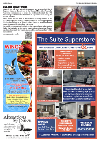 Many of you will have noticed the stunning new artwork installed at Belgrave Circle, at the gateway to the Golden Mile. Artist Anuradha Patel was commissioned to create the sculpture to mark the 50th anniversary of the arrival of thousands of Ugandan Asians fleeing the dictator Idi Amin.