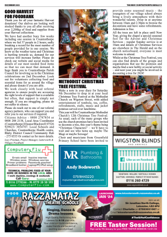 We have had another busy few weeks including one session in Countesthorpe where we fed 37 people in 2 hours; sadly breaking a record for the most number of people provided for in one session. We know as the weather turns and Christmas is hurtling towards us, demand for our services will increase further. Please do check our website and social media for details of our most needed food items so that we can meet that demand. A huge thank you to Countesthorpe Parish Council for involving us in the Christmas celebrations on 2nd December. Look out for volunteers collecting food and essential items for us around the village and please donate if you are able.
