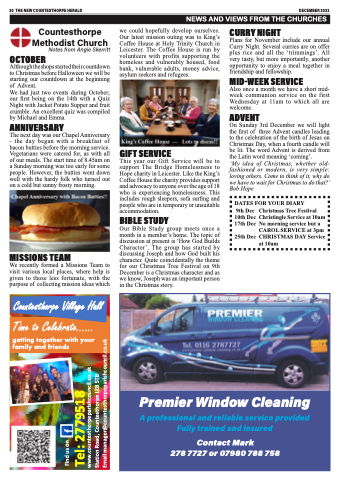 10th Dec Christingle Service at 10am 17th Dec No morning service but a
