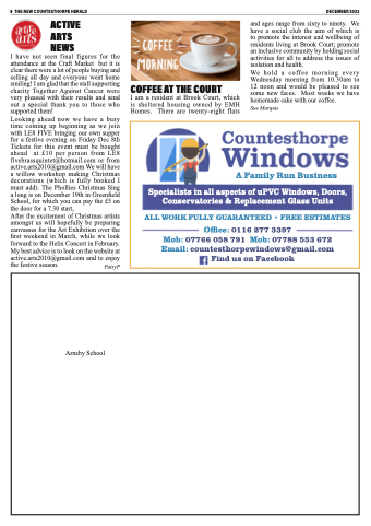 Looking ahead now we have a busy time coming up beginning as we join with LE8 FIVE bringing our own supper for a festive evening on Friday Dec 8th Tickets for this event must be bought ahead at £10 per person from LE8 fivebrassquintet@hotmail.com or from active.arts2010@gmail.com We will have a willow workshop making Christmas decorations (which is fully booked I must add). The Phollies Christmas Sing a long is on December 19th in Greenfield School, for which you can pay the £5 on the door for a 7.30 start,